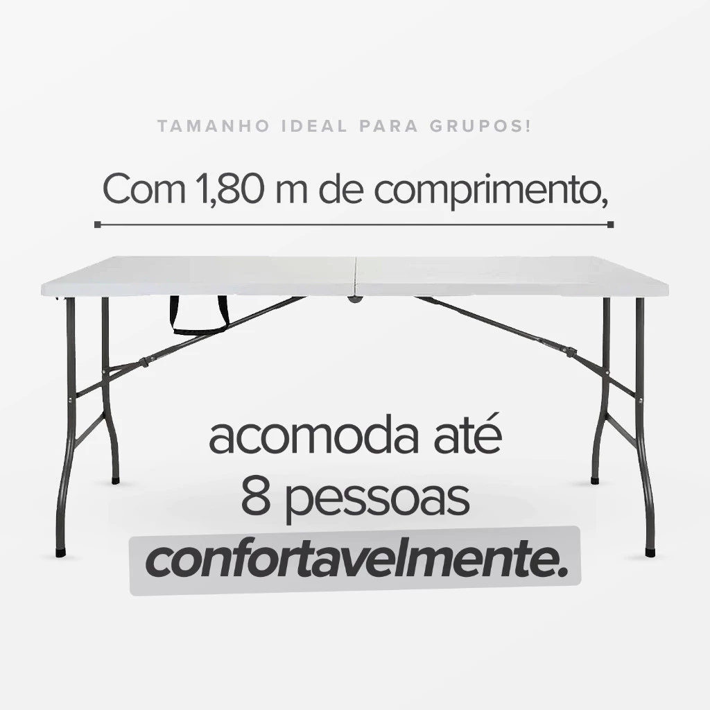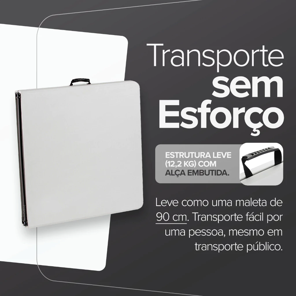 A mesa dobrável tipo maleta é a escolha certa para quem quer praticidade, resistência e organização. Fácil de montar e de transportar, ela oferece estrutura estável com tratamento antiferrugem e acabamento durável para uso em diferentes ambientes.